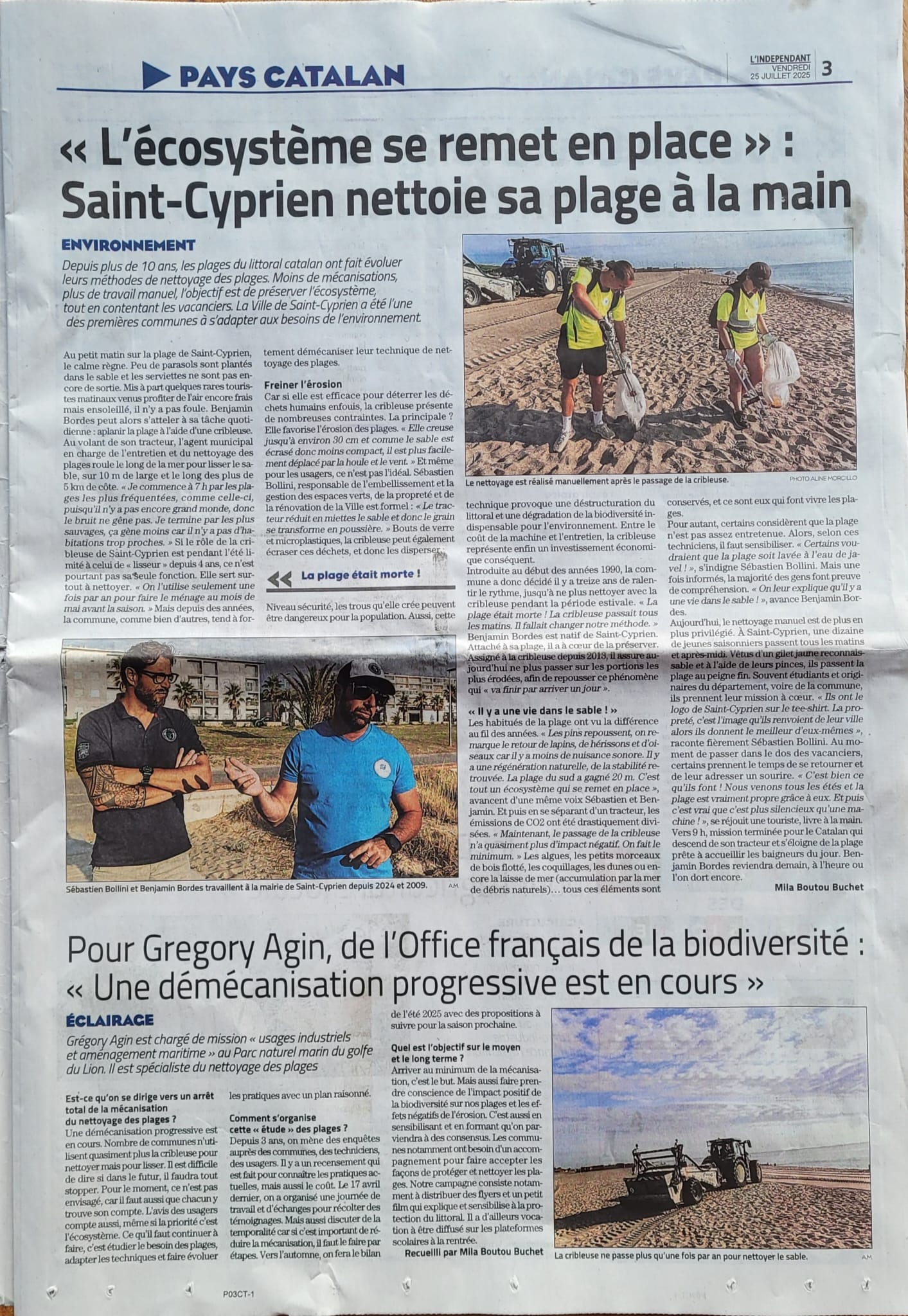 - France Inter. Reportage sur "Le Parc naturel marin préconise moins de machines pour nettoyer les plages des Pyrénées-Orientales" à partir de 11'30